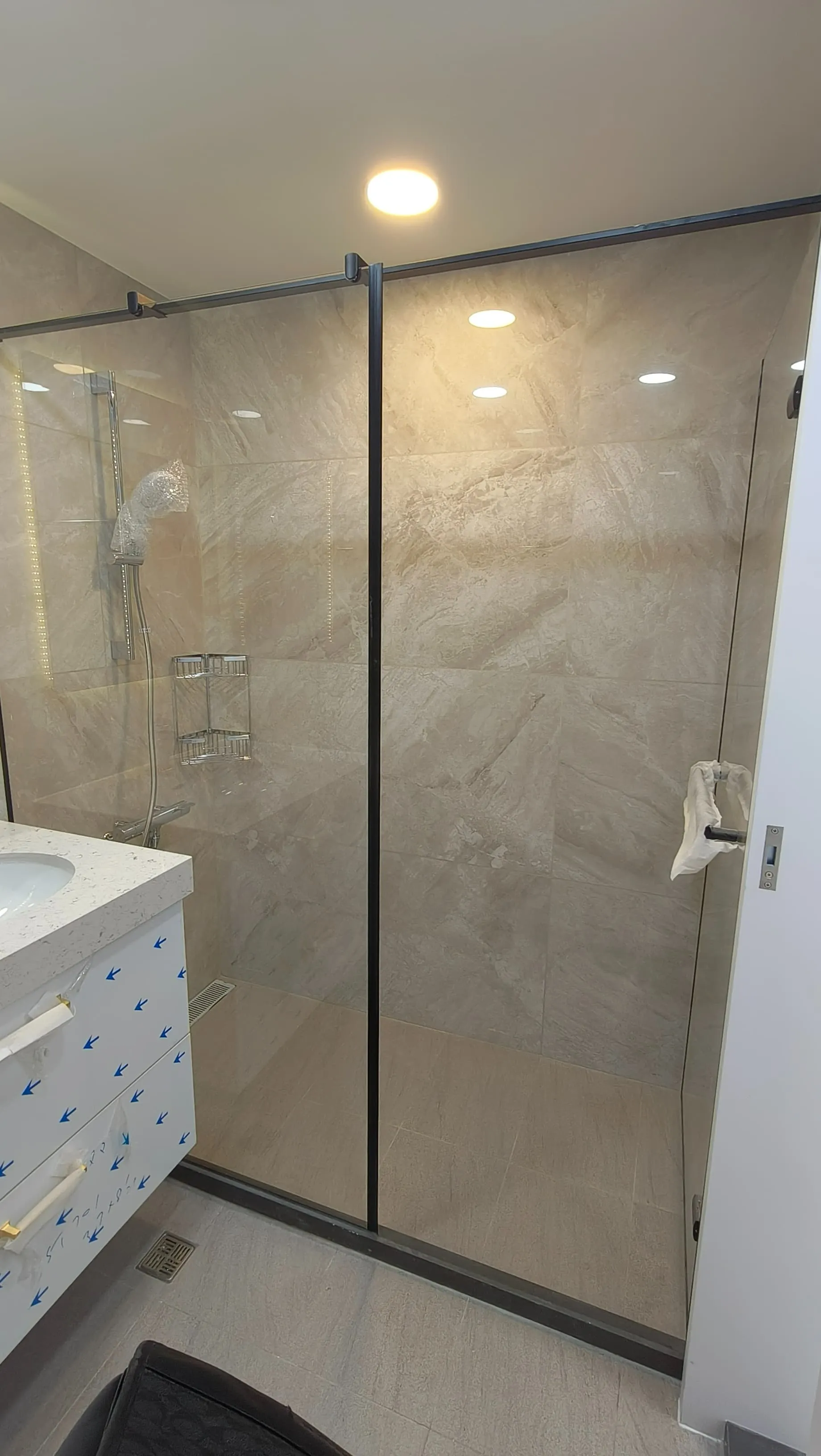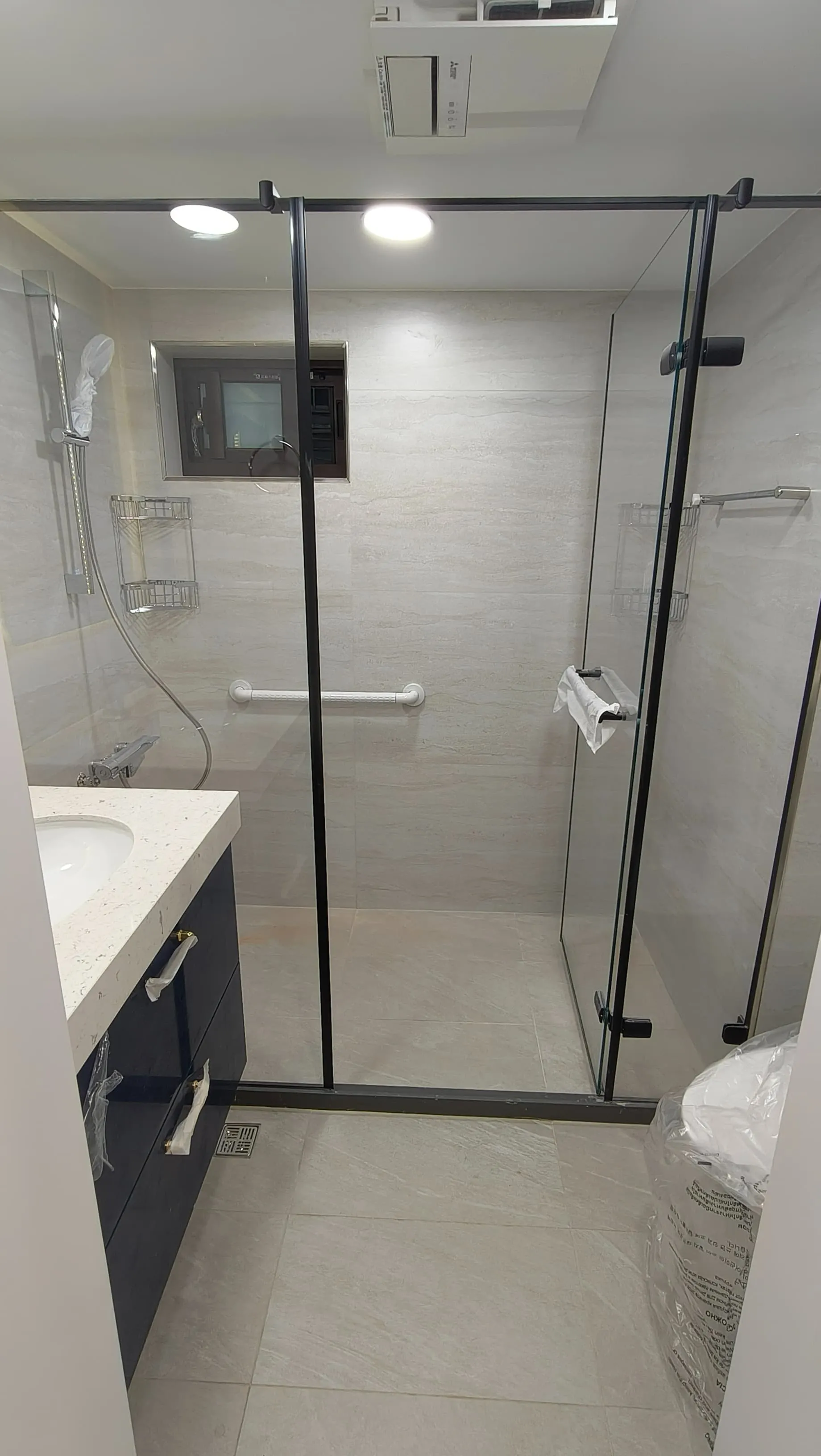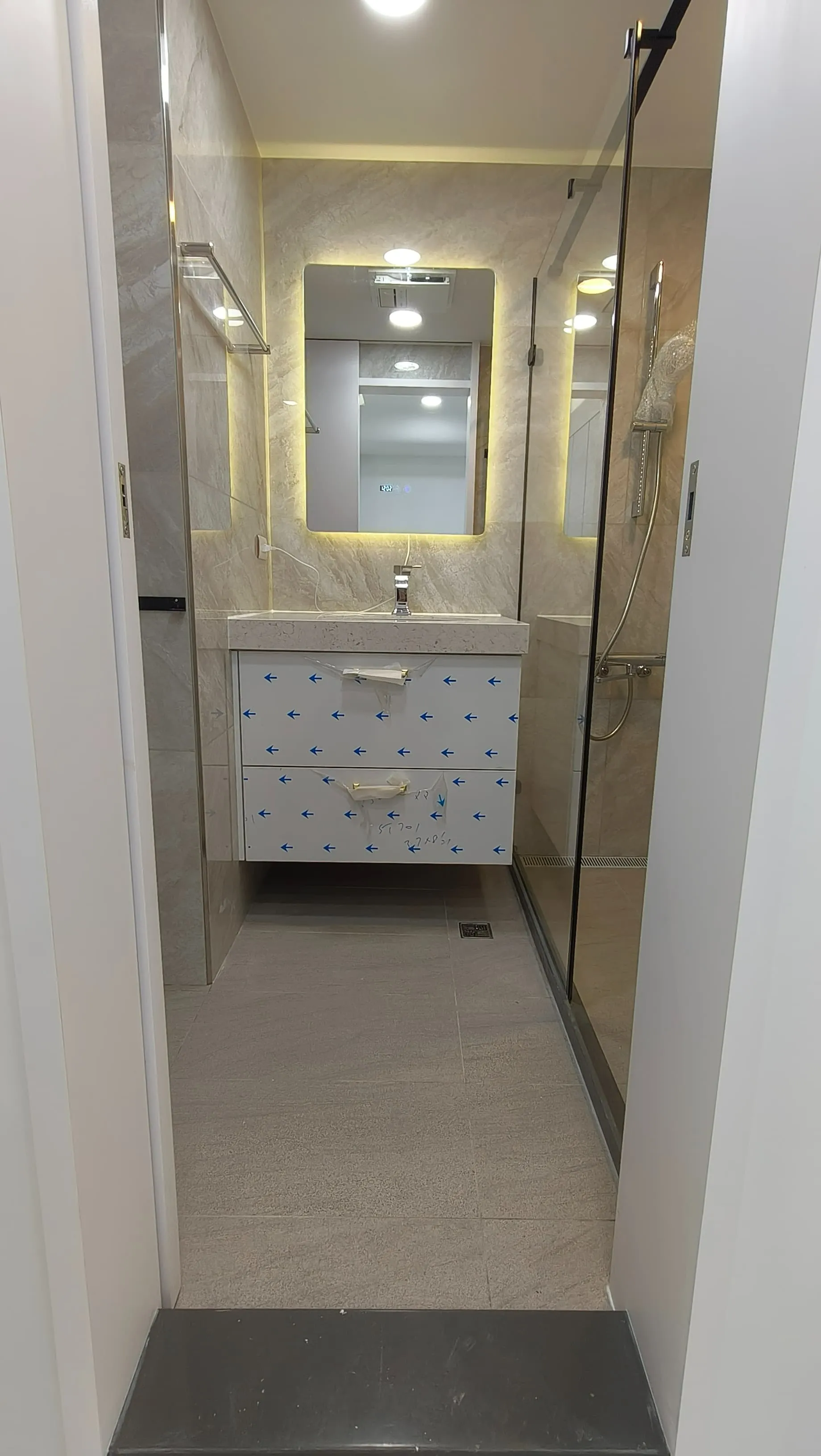 浴室壁地及全室地坪的面磚選擇了冠軍廠牌,並進行全美容縫處理,這不僅提升了整體美觀度,同時也有效防止水分滲入,確保了空間的耐用性和舒適性。